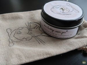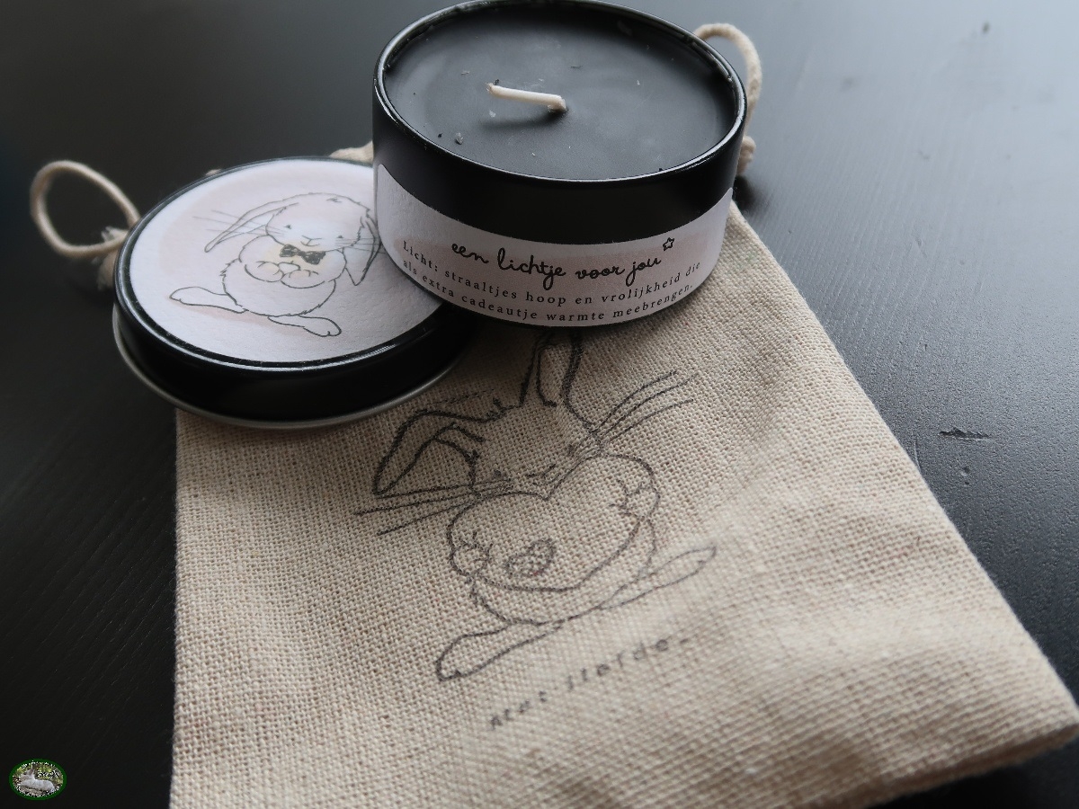 Geurkaarsblikje "Lichtje voor Jou" Geurkaarsblikje "Lichtje voor Jou" van Studio Keutels is een klein kaarsenblikje met zwarte kaarsenwas in de geur vanille verpakt in een klein katoenen/linnen zakje. Guusje shined zowel op het blikje als het bewaarzakje.