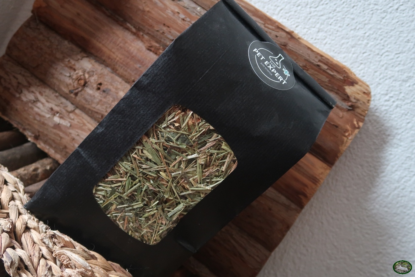De mix bestaat uit kruiden, zoals groene haver en oven gedroogd gras.